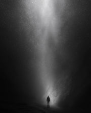 Wanderer of the Void captures a moment of profound solitude and awe. In this surreal black and white artwork, a single silhouette gazes upward into a blinding fracture in the night sky, as if reality itself has torn open. The star-speckled light pouring down evokes both hope and insignificance, making this poster ideal for lovers of cosmic horror, existential themes, and minimalistic dark art. A haunting visual for any space that embraces silence and scale.